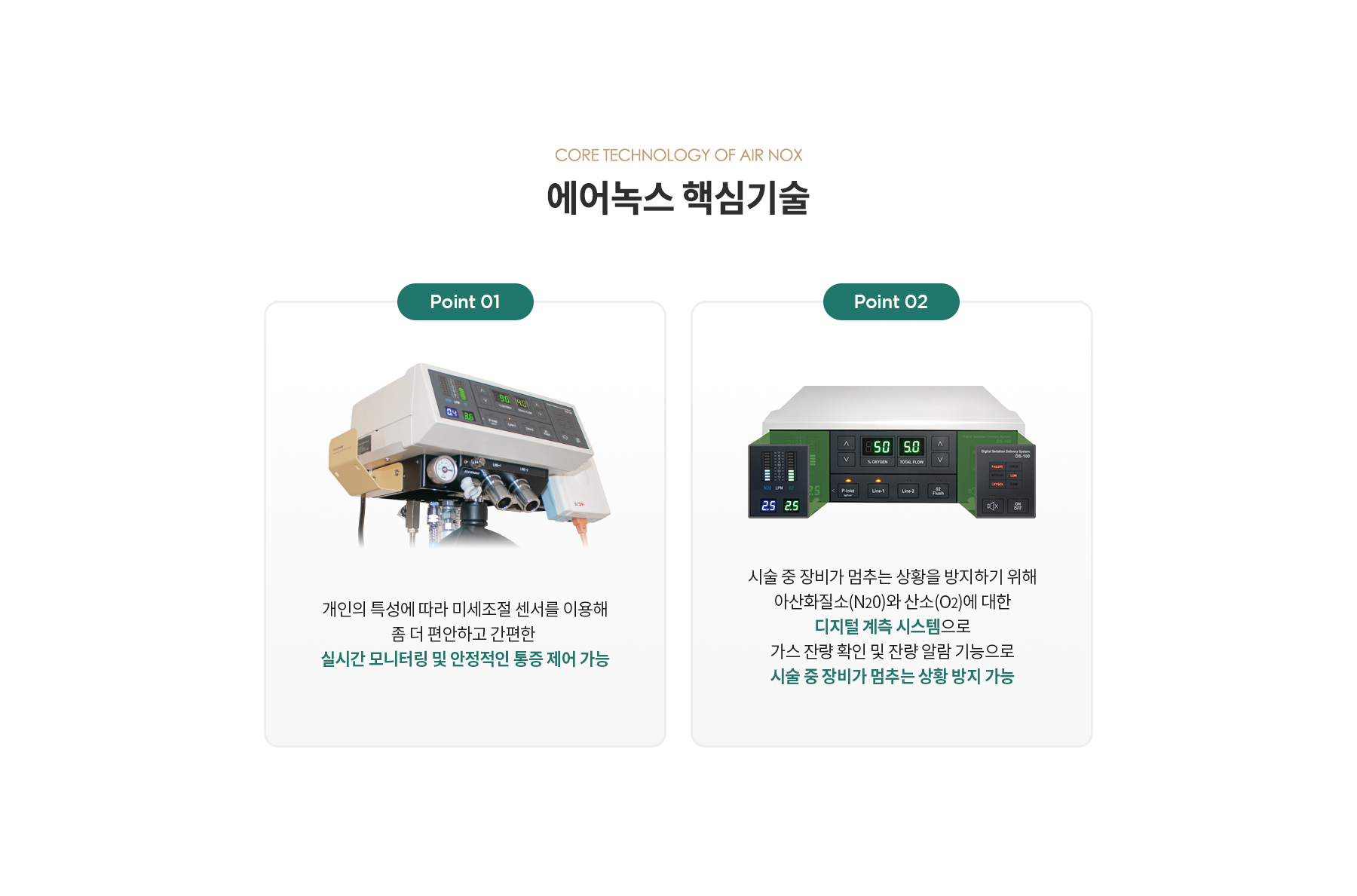 아산화질소(N2O)와 산소(O2)의 정밀한 조합으로 안전한 범주에서